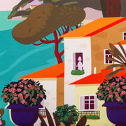 Silk Pocket Square Positano  hand  stitched edges
